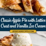 This classic Apple Pie à la Mode recipe features a flaky all-butter crust filled with tender, cinnamon-spiced apples and topped with a beautiful lattice crust. Served warm with a scoop of vanilla ice cream, this dessert combines buttery pastry and sweet, soft fruit filling in a timeless, comforting treat perfect for any occasion.