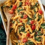 - Toss Pasta: Add the cooked pasta and wilted spinach to the baking dish with the smashed tomato-feta mixture. Toss to combine.
