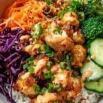 This Bang Bang Chicken Bowl is a vibrant, flavorful dish featuring crispy pan-fried chicken coated in a spicy mayo sauce, served over a bed of jasmine rice with fresh veggies like shredded lettuce, cucumber, and carrots. It’s a quick and easy meal perfect for lunch or dinner, with customizable protein options and a deliciously creamy, tangy sauce that packs a mild kick.