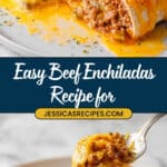 This Beef Enchiladas recipe features tender ground beef cooked with enchilada sauce and green chiles, wrapped in soft taco shells and baked with melted cheddar cheese for a comforting and flavorful Mexican-inspired dish.