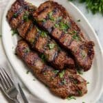A flavorful grilled steak marinade recipe that infuses New York Strip steaks with a perfect blend of olive oil, soy sauce, garlic, and honey, creating juicy and tender grilled steaks ideal for any barbecue or dinner.