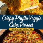 - Bake Crust and Veggies: Place the skillet in the preheated oven and bake for 35 to 40 minutes, or until the phyllo is golden brown on top and crispy to the touch.
