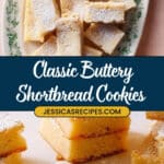 Classic buttery shortbread cookies baked to a delicate golden brown. These simple, tender cookies are made with just butter, sugar, and flour, offering a melt-in-your-mouth texture and subtle sweetness. Perfect for enjoying with tea or gifting during the holidays.