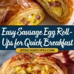 Sausage Egg Breakfast Roll-Ups are a quick and easy morning treat perfect for busy weekdays. These savory roll-ups combine fully cooked breakfast sausage links, fluffy scrambled eggs, and melted cheddar cheese wrapped in flaky crescent roll dough, then baked to a golden brown perfection.