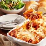 This Cheesy Baked Ziti is a comforting Italian-American casserole featuring al dente pasta mixed with a savory Italian sausage marinara sauce, creamy ricotta, and melted mozzarella and parmesan cheeses. It’s baked to bubbly perfection, making it an ideal family-friendly meal.