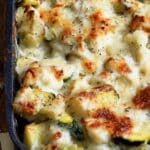 - Add Cheese Topping: Sprinkle the shredded mozzarella and grated Parmesan cheeses evenly over the zucchini and chicken mixture.