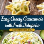 This Cheesy Guacamole recipe combines creamy ripe avocados with zesty lime juice, fresh cilantro, spicy jalapeño, and a delightful mix of shredded cheddar and crumbled queso fresco cheeses. Perfectly seasoned and served with crunchy tortilla chips, it’s an exciting twist on classic guacamole that brings cheesy richness and vibrant flavors to your appetizer table.
