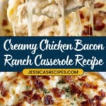 This Chicken Bacon Ranch Casserole is a comforting and creamy baked dish featuring tender pasta coated in Alfredo sauce and ranch seasoning, combined with shredded rotisserie chicken, crispy bacon, and melted mozzarella cheese. Perfect for an easy weeknight dinner, it’s flavorful, cheesy, and satisfying.