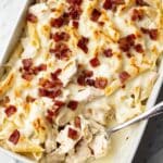 This Chicken Bacon Ranch Casserole is a comforting and creamy baked dish featuring tender pasta coated in Alfredo sauce and ranch seasoning, combined with shredded rotisserie chicken, crispy bacon, and melted mozzarella cheese. Perfect for an easy weeknight dinner, it’s flavorful, cheesy, and satisfying.
