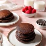 Deliciously rich and fluffy chocolate pancakes studded with melty chocolate chips, perfect for a decadent breakfast or brunch treat. This recipe combines cocoa powder and melted chocolate chips in the batter, resulting in intensely chocolatey pancakes that pair wonderfully with butter, maple syrup, and fresh fruit.