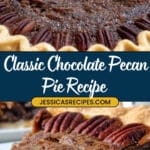 A rich and decadent Chocolate Pecan Pie featuring a buttery homemade pie crust, a luscious filling of bittersweet chocolate, sweet corn syrup, and crunchy pecans. This classic dessert combines the deep flavors of chocolate with the traditional sweet and nutty pecan pie for a delicious twist perfect for holidays or special occasions.