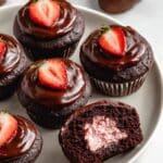 These Chocolate Covered Strawberry Cupcakes combine a rich, moist chocolate cupcake base with a luscious strawberry buttercream filling and a decadent chocolate ganache topping. Perfect for celebrations or an indulgent treat, these cupcakes offer a harmonious blend of chocolate and strawberry flavors with a smooth, fudge-like finish.