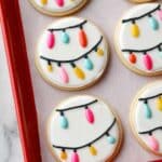 - Add Details and Final Touches: After the base layer dries, pipe additional decorations, such as light bulb details, using the medium consistency icing to complete the festive Christmas lights design.