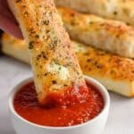 - Add topping and serve: Immediately brush the hot breadsticks with the prepared herbed butter mixture, then sprinkle evenly with grated Parmesan cheese. Slice all the way through the scored lines to separate the breadsticks. Serve warm with marinara sauce.