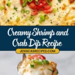 This delicious Shrimp & Crab Dip is a creamy, cheesy seafood appetizer featuring fresh snow crab meat and succulent shrimp, combined with cream cheese, mayo, sour cream, cheddar, and Parmesan cheeses, and seasoned with Old Bay and lemon zest. Baked to bubbly perfection and topped with fresh green onions and tomatoes, it’s perfect for serving with crackers, crostini, or veggies at any gathering.