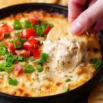 - Rest and Garnish: Remove the dip from the oven and let it rest for 5-10 minutes to thicken slightly. Sprinkle sliced green onion and chopped Roma tomato on top for freshness and color.