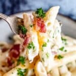Crack Chicken Penne is a creamy, comforting one-pan pasta dish featuring tender Cajun-seasoned chicken, crispy bacon, and a rich blend of cream cheese, cheddar, and mozzarella. This hearty skillet meal combines smoky, cheesy flavors with perfectly cooked penne pasta simmered in a savory chicken broth, making it an easy and satisfying weeknight dinner.