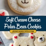 Delightful Soft-Batch Cream Cheese Polar Bear Cookies featuring buttery, fluffy cookies topped with creamy vanilla buttercream and decorated with sanding sugar and chocolate chips for a charming polar bear design. These cookies are perfect for festive occasions and fun baking projects with a tender texture and easy-to-follow preparation.