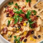 This Slow Cooker Cream Cheese Crack Chicken Chili is an easy, flavorful, and comforting dish perfect for chilly days. Combining tender chicken breasts with corn, black beans, diced tomatoes, and a blend of spices, this chili is enriched with velvety cream cheese and sharp cheddar for a creamy texture and irresistible taste. Conveniently prepared in a slow cooker, it requires minimal effort and delivers a satisfying meal perfect for family dinners or casual gatherings.