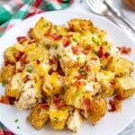 - Marinate Chicken: While the potatoes bake, toss the cubed chicken in the remaining 1/4 cup of ranch dressing to marinate and absorb flavor.