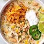 This Crockpot White Chicken Chili is a comforting, flavorful slow-cooked stew featuring tender chicken breasts simmered with white beans, fire-roasted green chiles, aromatic spices, and creamy cheese. Perfect for a hearty meal, it combines a delicate blend of cumin, chili powder, and oregano with a touch of heat from cayenne pepper, resulting in a rich and satisfying chili that is easy to prepare and perfect for cozy dinners.