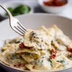 - Combine and serve: Drain the cooked ravioli and plate them. Pour the creamy Tuscan garlic sauce over the ravioli, and serve immediately while warm for a satisfying meal.