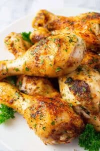 I keep leftover crispy chicken legs in an airtight container in the fridge for up to 3-4 days. Just a heads up, the skin softens in the fridge, but I’ve found reheating in the oven easily brings back some of that crunch.