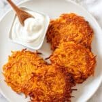- Ensure the shredded sweet potato is well-patted dry to achieve crispy hash browns.