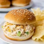 - Add toppings and serve: Fold in the shredded cheddar cheese, cooked and crumbled bacon, and thinly sliced green onions. Mix thoroughly and serve warm, either on buns for sandwiches or spooned into bowls.