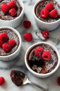 Divide the batter evenly into your prepared ramekins and place them on your baking sheet. Pop them in the oven for 20-22 minutes, or until the cakes have puffed up and the tops look dry but the centers still feel moist when touched lightly. I like to watch carefully around 18 minutes the first time, because you don’t want to overbake and lose that luscious texture. Once out of the oven, garnish with more fresh raspberries and a dusting of powdered sugar. Bonus points for a dollop of whipped cream or a scoop of vanilla ice cream—because, why not?