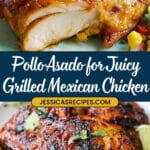 For a fun dinner party, I’ve served the pollo asado sliced over warm corn tortillas with avocado slices and a drizzle of crema. It instantly transforms into a tasty taco night centerpiece! And for casual family dinners, plating it simply with sides and lime wedges keeps things festive and approachable.