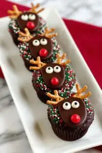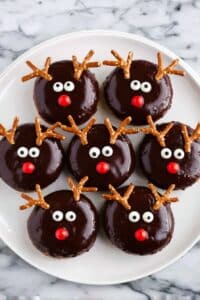 Freezing is not my go-to for this recipe because the candy melts can sometimes get a little bloom or sticky condensation when thawed. But if you do freeze them, wrap each snowman individually in plastic, then seal in a freezer bag, and thaw in the fridge for several hours before serving.