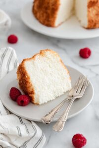 I usually enjoy angel food cake cold or at room temperature, but if you’d like it a bit warmer, a quick 10-15 second zap in the microwave (on low power) works well. Just be careful—not too long or it loses its fluff!