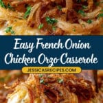 This French Onion Chicken Orzo Casserole is a comforting and flavorful one-dish meal featuring caramelized onions, tender orzo pasta, and shredded chicken baked in a creamy cheese sauce. With layers of melted mozzarella and Parmesan cheeses and optional depth from Worcestershire sauce or balsamic glaze, this hearty casserole is perfect for a cozy family dinner or easy meal prep.