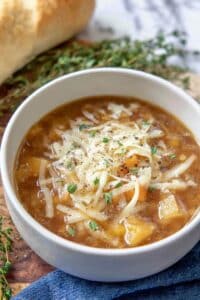 For special occasions, I like serving this soup in individual oven-safe crocks with a thick crouton topped with cheese broiled until bubbly and golden. It feels fancy but is so easy to pull off, and everyone feels a little extra pampered.