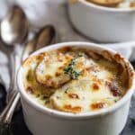 This classic French Onion Soup recipe features sweet caramelized onions, a rich beef broth infusion, and a cheesy toasted bread topping melted to perfection under the broiler. It’s a comforting and hearty soup ideal for cozy meals.