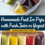 Refreshing and healthy fruit ice pops made with your choice of fresh or thawed frozen fruits blended with apple juice, coconut milk, or yogurt. These easy-to-make frozen treats are perfect for a hot day, customizable in flavor and sweetness, and freeze solid for a cool, creamy texture.