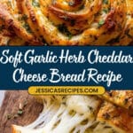 This Soft Garlic Herb Cheddar Cheese Bread is a warm, flavorful bread packed with a blend of cheddar, mozzarella, and parmesan cheeses accented by fragrant Italian herbs and fresh garlic. The dough is soft and tender, enriched with milk, honey, and eggs, then twisted and baked to a golden perfection. Perfect served warm right out of the oven, this savory bread makes a delightful appetizer or side dish for any meal.