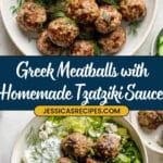 This delicious recipe features Greek Meatballs baked to perfection and accompanied by a refreshing homemade Tzatziki Sauce. Combining ground beef and pork with fresh herbs and spices, these meatballs are flavorful and juicy. The cool, creamy tzatziki made with Greek yogurt, cucumber, garlic, and dill complements the savory meatballs perfectly, making it an ideal dish for a hearty meal or entertaining guests.