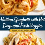 Haitian Spaghetti is a flavorful and hearty pasta dish featuring al dente spaghetti tossed in a rich Haitian-inspired tomato sauce made with epis (a traditional blend of herbs and vegetables), sautéed peppers, onions, tomatoes, and savory hot dogs, finished with boiled eggs for a delicious and satisfying meal.