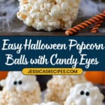These Halloween Popcorn Balls are a festive and fun treat perfect for celebrating the spooky season. Made with crispy popcorn coated in a smooth, sweet marshmallow and butter mixture, then dipped in bright white candy melts and decorated with creepy candy eyeballs, these popcorn balls are easy to make and sure to delight kids and adults alike. They’re great for Halloween parties, trick-or-treating snacks, or a creative seasonal dessert.
