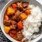 Grandpa Clarence’s Hawaii-Style Beef Stew is a rich, tangy, and hearty dish that features tender beef chuck slow-simmered with a colorful medley of vegetables, tomato paste, shoyu, Worcestershire sauce, and beef stock. This comforting stew captures the essence of Hawaiian flavors and is perfect served over a bed of rice for a satisfying meal that warms the soul.