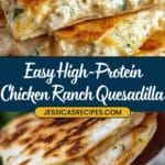 This High-Protein Chicken Ranch Quesadilla is a quick and delicious low-carb meal featuring a creamy blend of shredded rotisserie chicken, Greek yogurt, cheeses, and ranch seasoning, all grilled to golden perfection in a buttery tortilla. Perfect for a flavorful, protein-packed lunch or dinner.