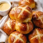 These soft and chewy Pretzel Rolls are the perfect homemade twist on the classic pretzel. Boiled in a baking soda bath to develop their signature deep brown crust and rich flavor, these rolls are golden, salty, and delightfully fluffy on the inside. Ideal for sandwiches or as a side, they bring a rustic charm and irresistible taste to any meal.