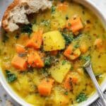A nourishing immune boosting soup packed with vegetables, lentils, and spices like turmeric and ginger, perfect for a healthy, hearty meal that supports wellness and vitality.