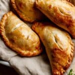 This Irish Pasties recipe features a delicious gluten-free twist on a classic comfort food, filled with a savory mixture of potatoes, rutabaga, Beyond Meat sausage, and aromatic herbs, all encased in a flaky aged cheddar and butter crust. Perfect for a hearty lunch or dinner, these hand pies are baked until golden brown and offer a satisfying blend of textures and flavors.