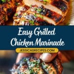 This Grilled Chicken Marinade recipe creates juicy, flavorful boneless skinless chicken breasts or thighs with a zesty blend of olive oil, lemon juice, soy sauce, balsamic vinegar, and aromatic herbs and spices. Perfect for grilling or stovetop cooking, this versatile marinade enhances your chicken with a tangy, savory profile and a hint of sweetness from brown sugar. Ideal for quick weeknight dinners or weekend cookouts.