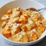 This Keto Buffalo Chicken Skillet is a creamy, cheesy, and flavorful low-carb meal perfect for those following a keto diet. Tender diced chicken breast and crispy bacon are sautéed with ranch seasoning, then combined in a luscious buffalo cheese sauce made with cream cheese, almond milk, and cheddar. This one-pan dish is quick to prepare and great for a cozy dinner or meal prep.