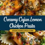A flavorful and hearty dish featuring tender bowtie pasta and succulent chicken pieces tossed in a zesty lemon butter sauce with fresh broccoli and Cajun-seasoned spices, finished with Parmesan cheese and fresh herbs for a comforting, yet vibrant meal.