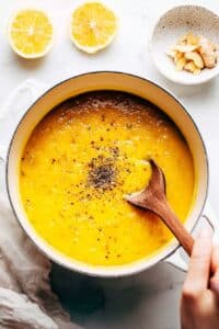 - Red lentils: They cook quickly and break down perfectly, giving the soup nice creaminess.